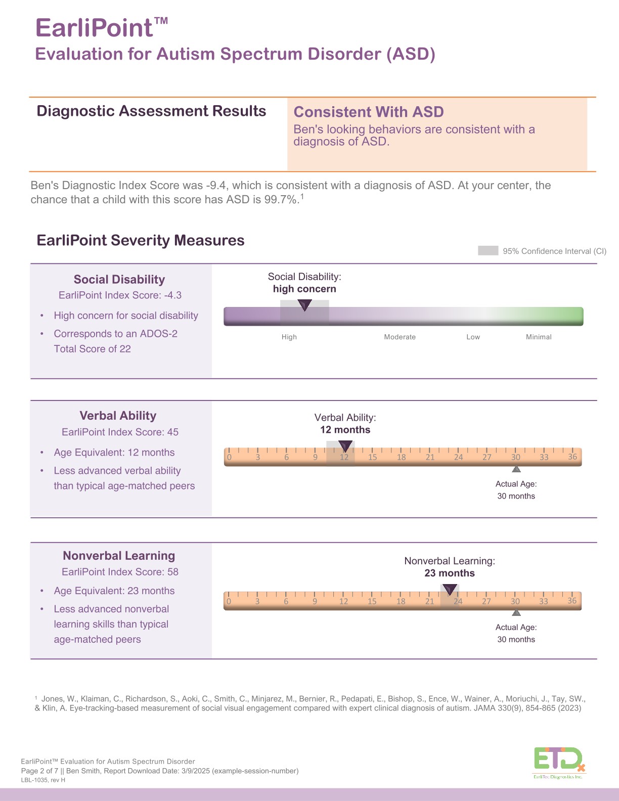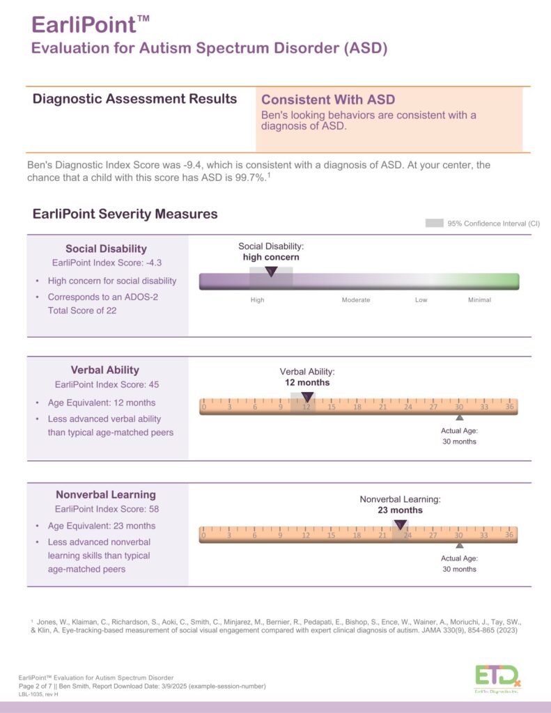In our 30,000-square-mile catchment area of Central, Eastern, and Southern Oregon, EarliPoint has been transformative in improving access to timely autism diagnosis. By placing devices in primary care clinics, we reduce travel burdens for families and can complete evaluations remotely, combining the objective EarliPoint data with developmental screenings and clinical interaction to strengthen diagnostic confidence. This approach has significantly shortened wait times, empowered providers, and given families earlier access to answers and treatment. Families who come to our clinic have expressed increased confidence and acceptance of the differential diagnosis when they see the EarliPoint results that match our neurodevelopmental testing.