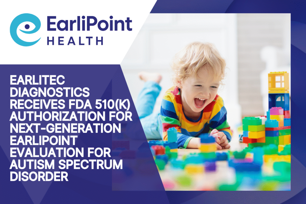 EarliTec Diagnostics, Inc. today announced U.S. Food and Drug Administration (FDA) 510(k) authorization of the second generation of its EarliPoint™ Evaluation for ASD for children ages 16-30 months old.